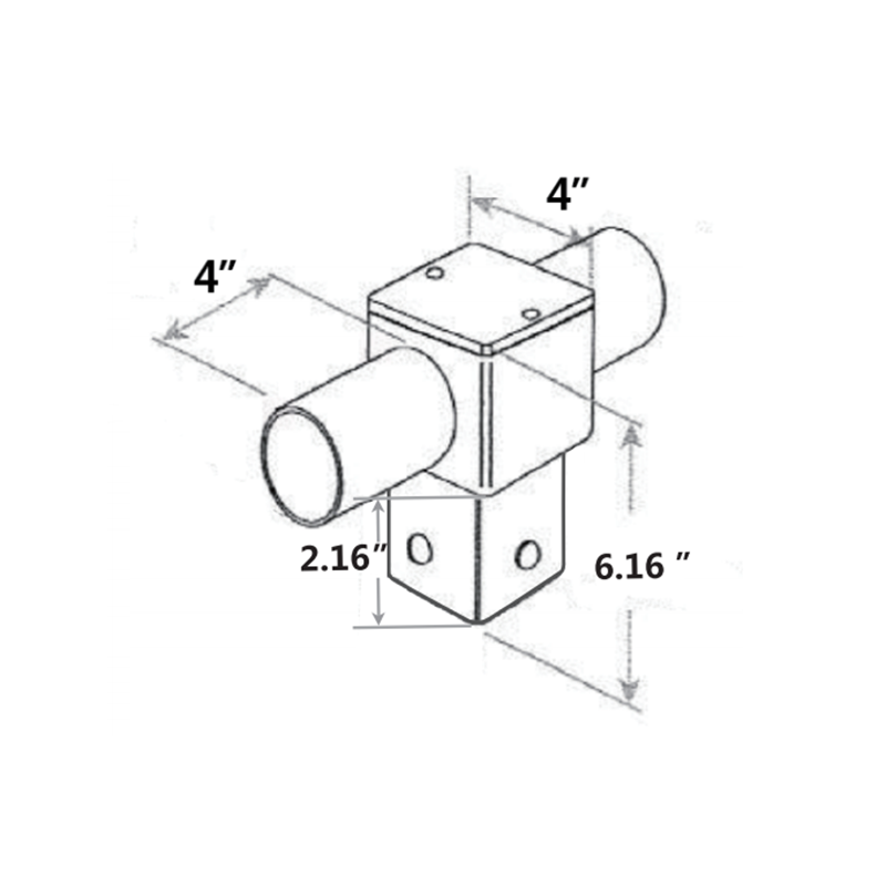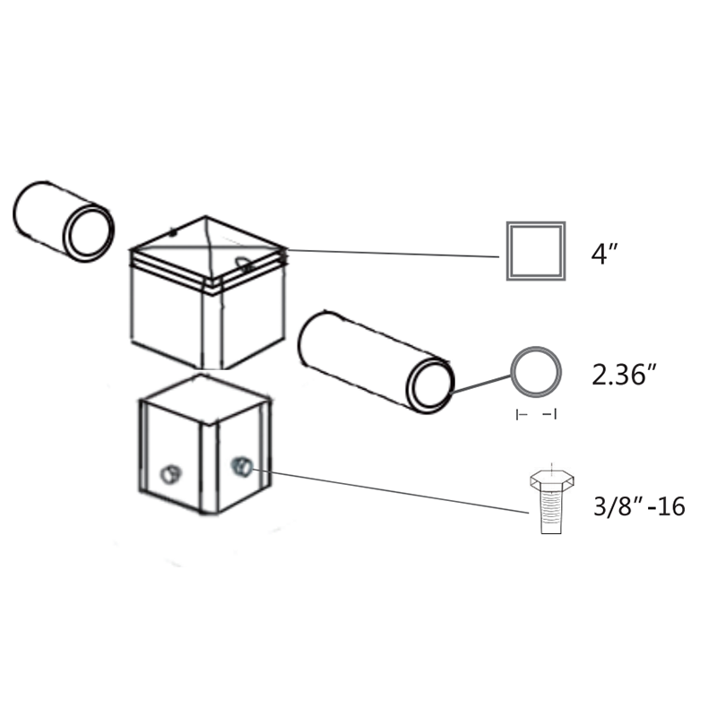 使用此适配器,您可以将4英寸方柱的顶部转换为180度方向的2水平2 3/8英寸榫。 无论杆的规格和材料如何,此适配器的底部都在杆内部滑动(内部配合)。 该榫头适配器由钢制成,并提供标准的黑古铜色饰面,但也可提供其他粉末涂料饰面选择。4英寸方柱支架,碳钢,光亮古铜/底座:4个螺钉孔,用于3/8英寸-16 /网球:2x 水平榫眼,180D,OD60x HT4“