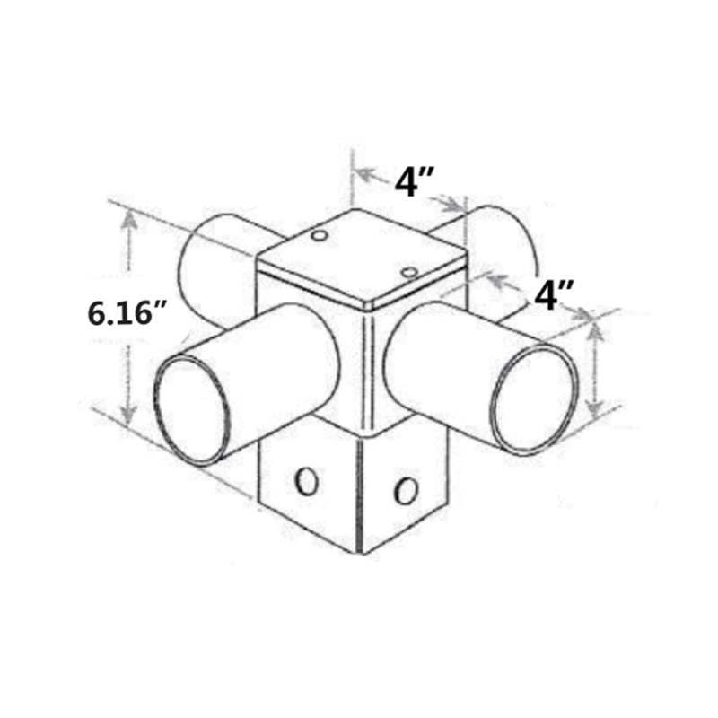 使用此适配器,您可以将4英寸方柱的顶部转换为90度定向的4水平2 3/8英寸榫。 无论杆的规格和材料如何,此适配器的底部都在杆内部滑动(内部配合)。 该榫头适配器由钢制成,并提供标准的黑古铜色饰面,但也可提供其他粉末涂料饰面选择。4英寸方柱托架,碳钢,光亮古铜/底座:4个螺钉孔,用于3/8英寸-16 /榫眼:4x 水平橡皮筋,90D,OD60x HT4“