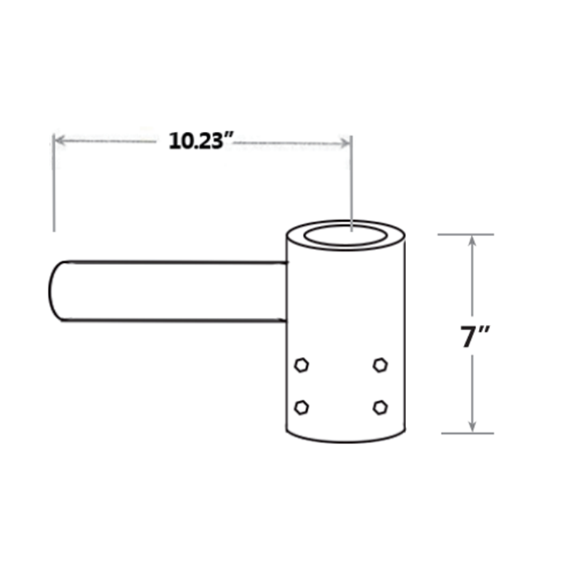 该支架的底部直径为2-1 / 2英寸(内径),无论杆的形状如何,它都可以在2-3 / 8英寸的榫头上滑动配合。 臂的外径为2-3 / 8英寸,可将任何带有标准2-3 / 8英寸滑动垫片的灯具固定在上面。 提供了三个固定螺钉,用于将该支架固定在杆上。4“圆杆支架,碳钢,亮铜/底座:6个螺钉孔1用于3/8” -16 /榫:1 x水平榫,90D,OD60x HT 10