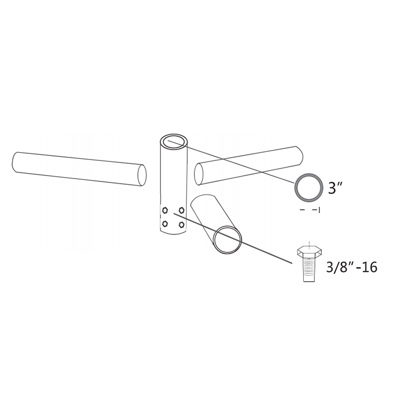 该支架的底部直径为2-1 / 2英寸(内径),无论杆子的形状如何,它都可以在任何2-3 / 8“榫上滑动安装。每个臂为2-3 / 8” 外径允许任何具有标准2-3 / 8英寸滑动钳的灯具安装在上面。 如果您需要底部适合2-7 / 8“或4”榫,请与我们的销售工程师联系,以便我们为您提供报价f或自定义我们的支架。 提供了4个固定螺钉以将该支架固定在杆上。 4“圆杆支架,碳钢,光亮古铜/底座:6个用于3/8” -16 /榫的螺丝孔:3 x水平榫,三重120D,OD60 x HT10“