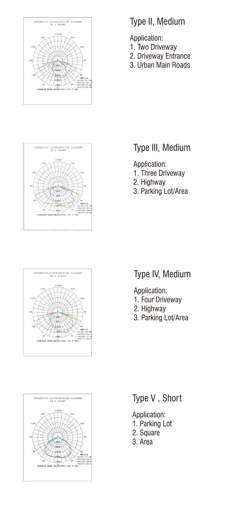 2. Type I, II, IV,V beam angles availble and customizable.
